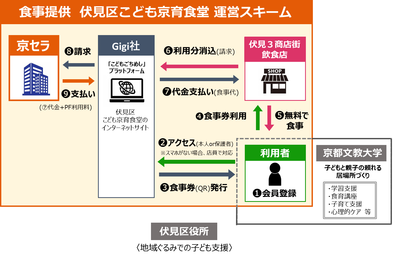 京セラ株式会社(代表取締役社長:谷本 秀夫、以下 京セラ)、京都文教大学(学長:森 正美、以下 京都文教大)、Gigi株式会社(本社:福岡市、代表取締役:今井了介、以下Gigi)は、京セラの本社が所在する京都市伏見区において、地域の子どもたちへの食事提供とコミュニケーション機会を創出するため「伏見区こども京育食堂」の運営を本年5月29日(月)から開始することをお知らせします。
