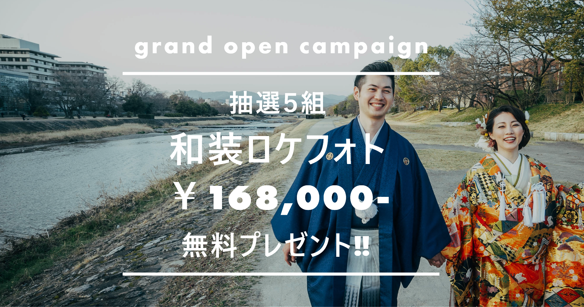 またオープンを記念して「和装ロケフォト 168,000円」を抽選で5組に無料プレゼントいたします。