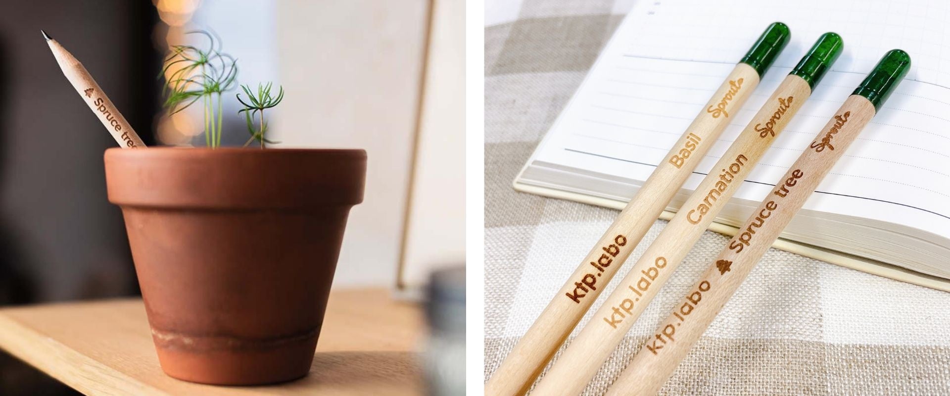 2012年マサチューセッツ工科大学(MIT)の3人の学生が、「未来のオフィスに必要なものを開発する」という授業の一環でプラスチックを使わない鉛筆に着目し、使い終わった後に植えられる、自然に優しい筆記具として発明しました。そしてその鉛筆をデンマークにあるスプラウト社が商品化し、現在までに世界80か国以上で約3000万本以上が販売されています。