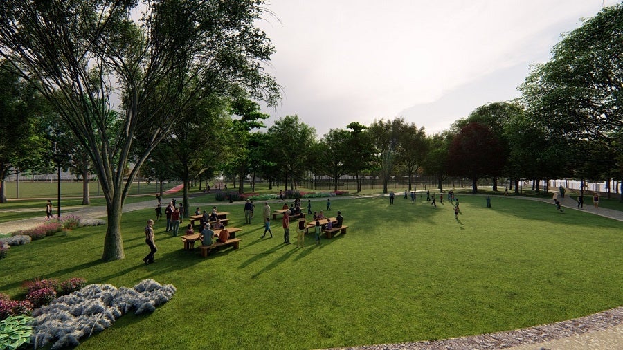 <主な施設>グラウンド1面、テニスコート11面、ランニングコース、まちライブラリー、駐車場等