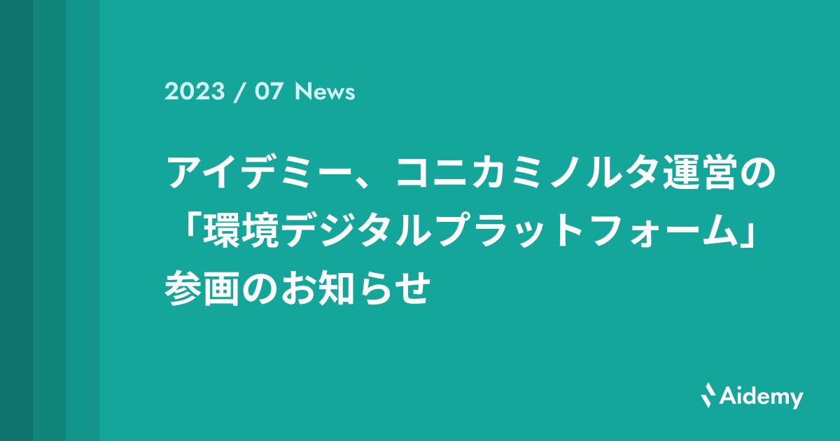 デジタル変革に伴走する株式会社アイデミー(本社:東京都千代田区、代表取締役執行役員 社長CEO 石川聡彦、以下「アイデミー」)は、2023年6月にコニカミノルタ株式会社(本社:東京都千代田区、代表執行役社長 兼 CEO 大幸 利充、以下「コニカミノルタ」)が運営する「環境デジタルプラットフォーム」へ参画いたしました。「環境デジタルプラットフォーム」は、環境活動のノウハウを企業間で共有し、日本の産業界全体で環境負荷低減に取り組むエコシステムです。