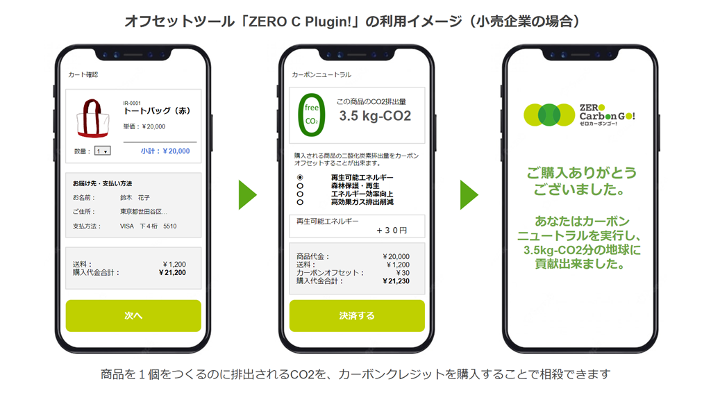 利用者もカーボンオフセットに参加できるアプリ/Web機能追加、カーボンクレジット販売、プロモーションから総合的に支援