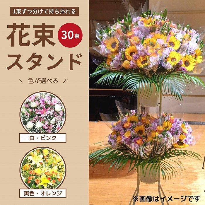 周年祝い行事や、イベント、披露会、パーティー、発表会などで華やかさを添えるスタンド花。