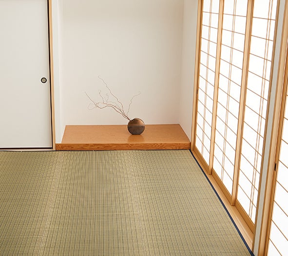 国産い草を気軽に使っていただけるよう、紋織でシンプルに仕上げた花ござ「清涼(せいりょう)」。軽くしなやかで手軽に敷きやすいので、普段使いにおすすめです。