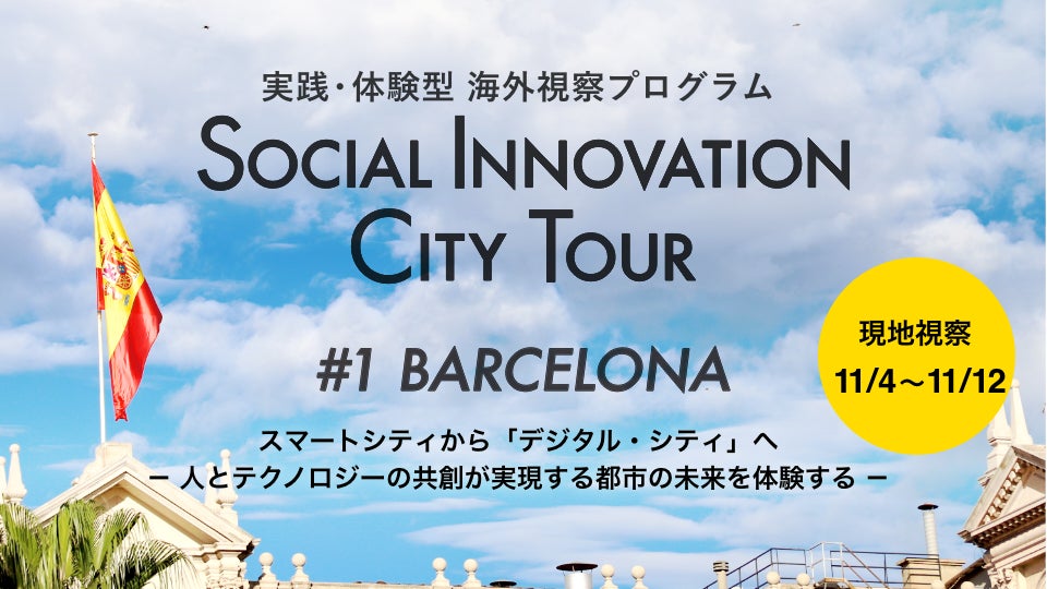 ビジネス課題と社会課題を同時解決するソリューションを提供する株式会社SIGNING(サイニング、本社:東京都港区、代表取締役社長:亀山淳史郎、以下SIGNING)は、世界のソーシャルイノベーションの最前線を体験的に学ぶ海外視察研修プログラム”Social Innovation City Tour”を企画・開発しました。第一弾はスペイン・バルセロナ。行政と市民がともにテクノロジーやオープンデータをもとに進めている「デジタル・シティ計画」について、キーマンとのセッションや現地視察のフィールドワークを通して「イノベーション・エコシステム」づくりを学びます。