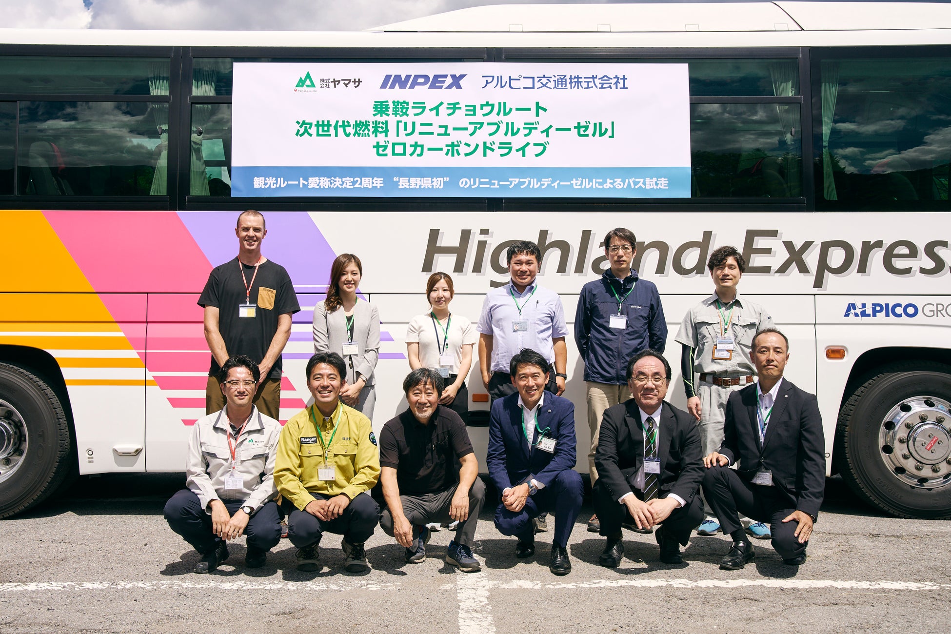 株式会社ヤマサ(本社:長野県松本市、代表取締役社長/北爪寛孝)は、2023年8月1日(火)に、株式会社INPEX(本社:東京都港区、代表取締役社長/上田隆之)と連携し、アルピコ交通株式会社(本社:長野県松本市、代表取締役社長/小林史成)の協力を得て、環境省が認定した国立公園初のゼロカーボンパークである乗鞍高原(長野県松本市)から乗鞍岳畳平(岐阜県高山市)までを、リニューアブルディーゼルを燃料としたバスで試走する実証実験を行いました。