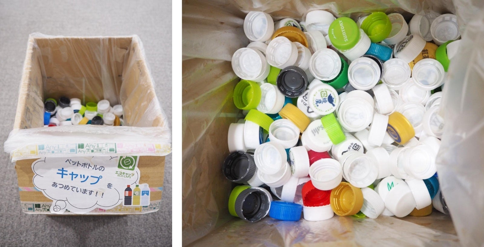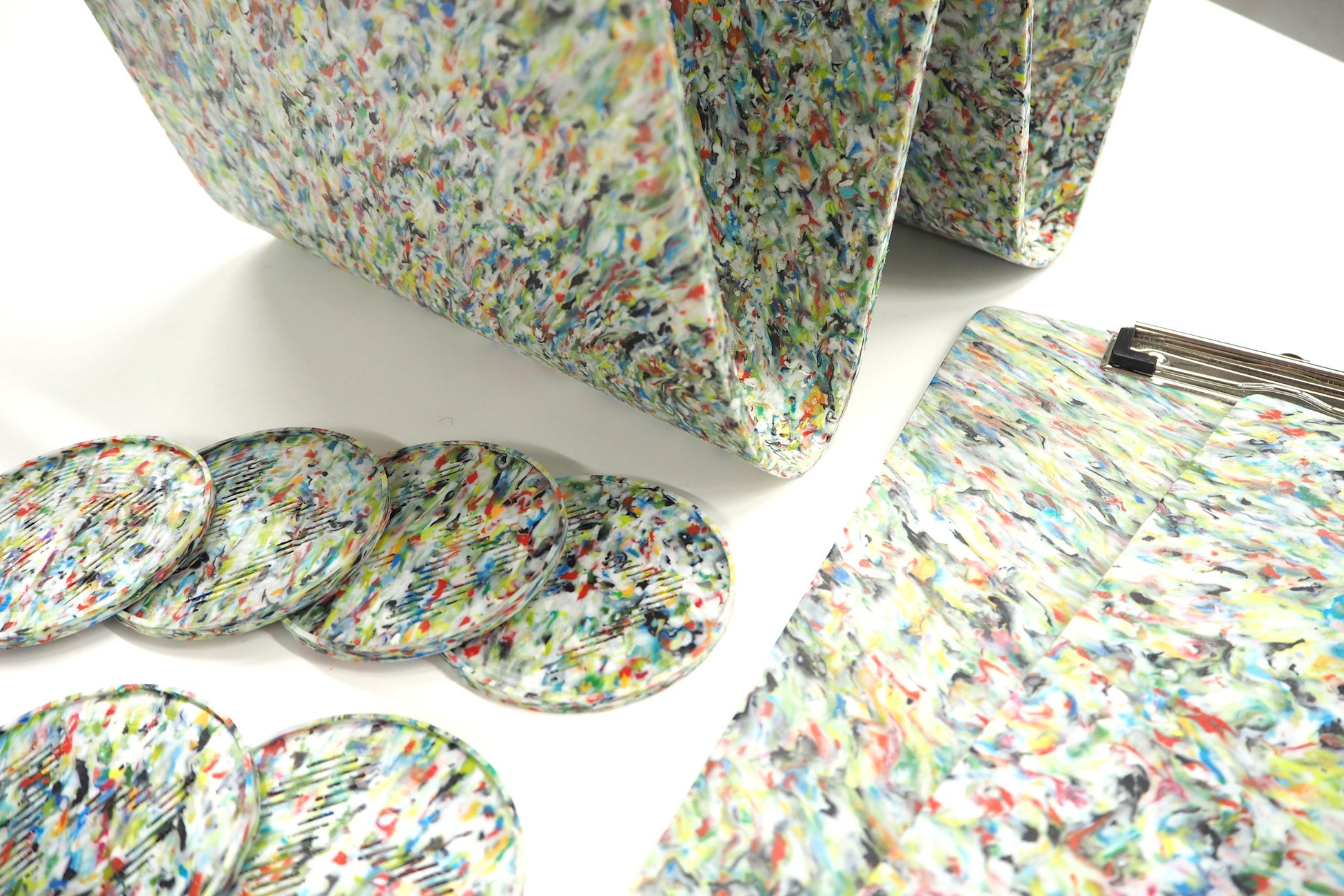 当社のオフィスで出たペットボトルゴミ(キャップ)を使い、REMAREにてマガジンラック・バインダー・コースターを制作いただきました。