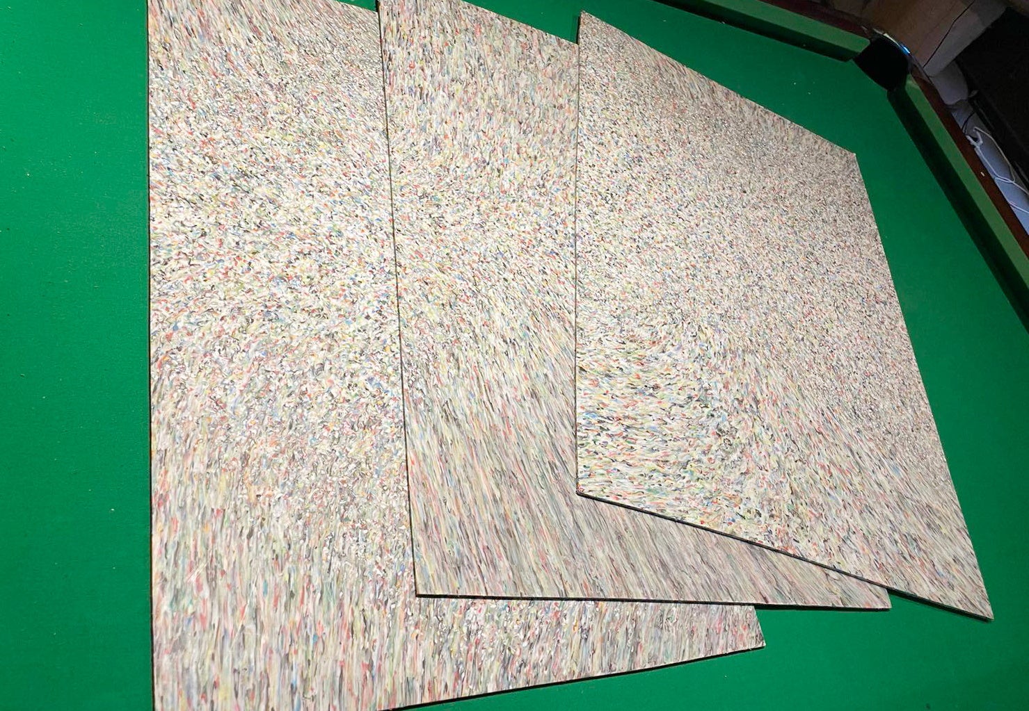 株式会社REMAREは三重県鳥羽市に自社工場をもち、廃棄プラのマテリアルリサイクルに取り組む企業です。同じものは1枚とないデザイン性の高い板材へ変換します。2023年グッドデザイン賞受賞。