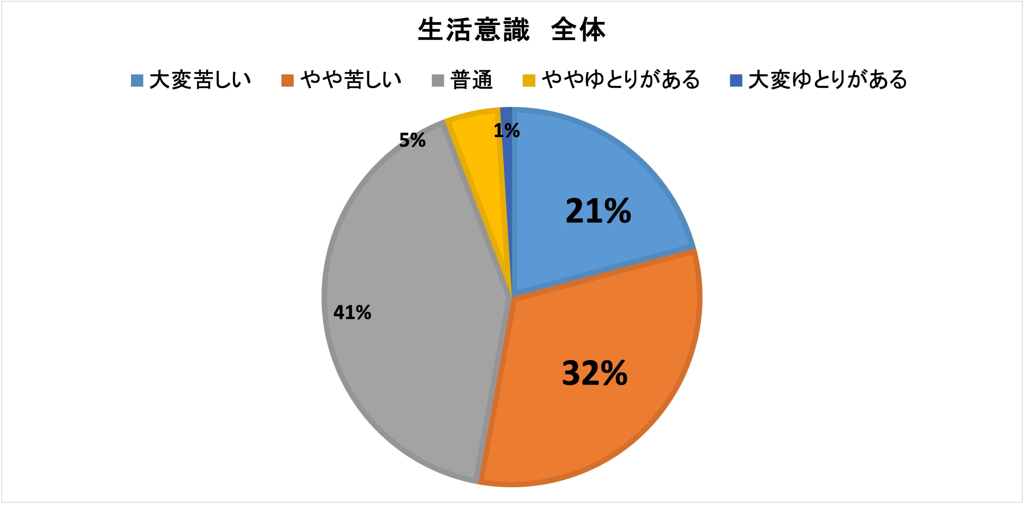 少し前の調査ではありますが、2019年に厚生労働省が行った調査(2019年家庭の生活実態及び生活意識に関する調査)では、「生活が苦しい・大変苦しい」と答えた世帯は総数の50%程度ありました。