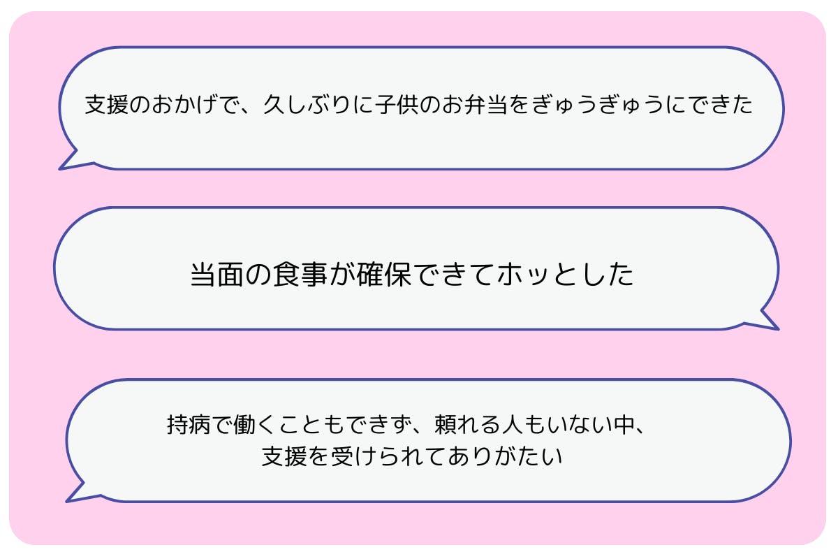 一方で、私たちの支援を受けた方から、こうしたお声が寄せられています。