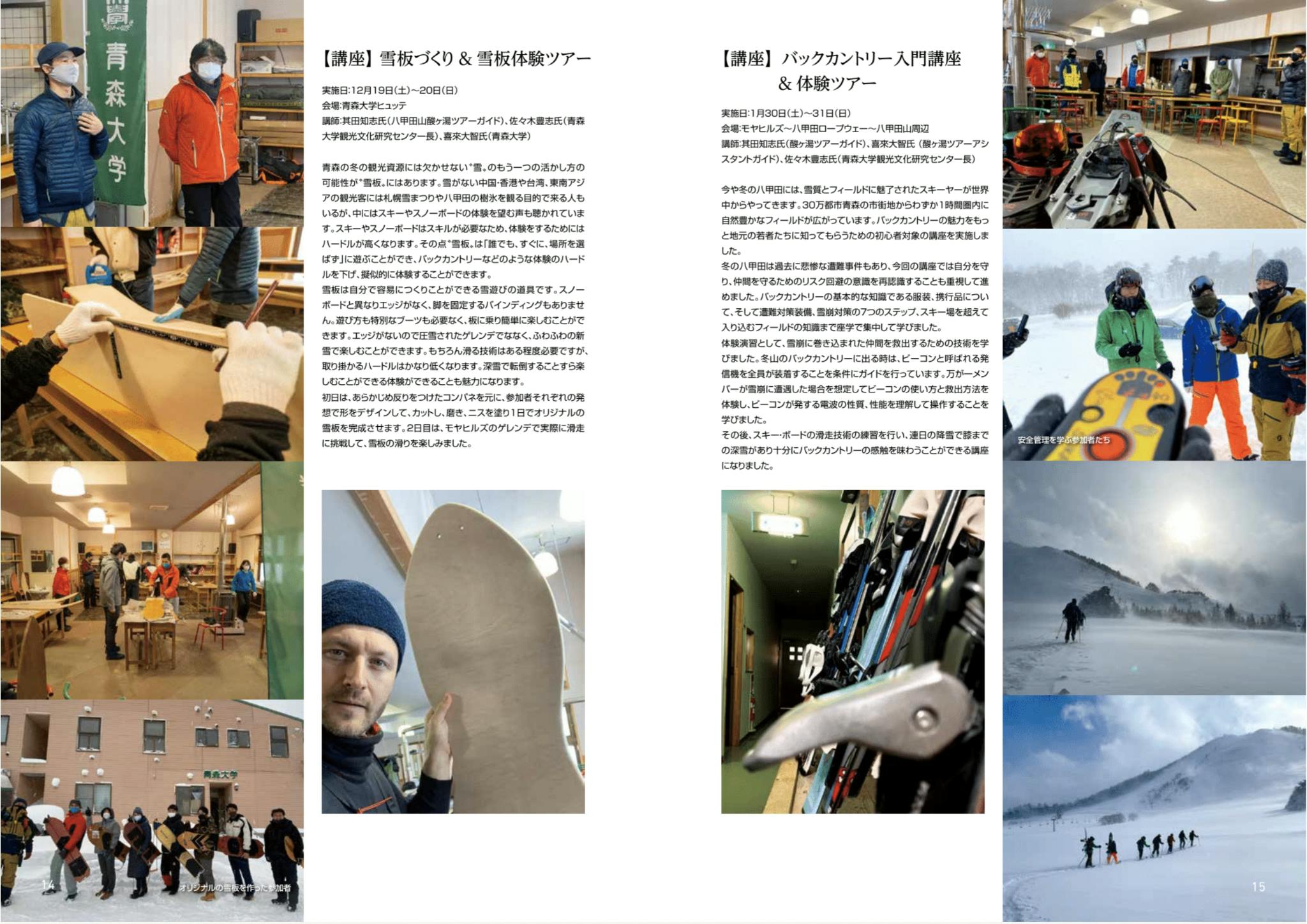 これまで、青森の自然資源を活用して子どもや地域の人たちにイグルーマイスター育成講座などのイグルーづくり体験・雪板づくり・バックカントリー体験・カヌー体験・サイクリング&フィッシングツアー・野草と縄文体験・陸奥湾イルカ観察ツアーなど青森県の自然資源を生かした自然体験や冒険教育の場を提供してきました。