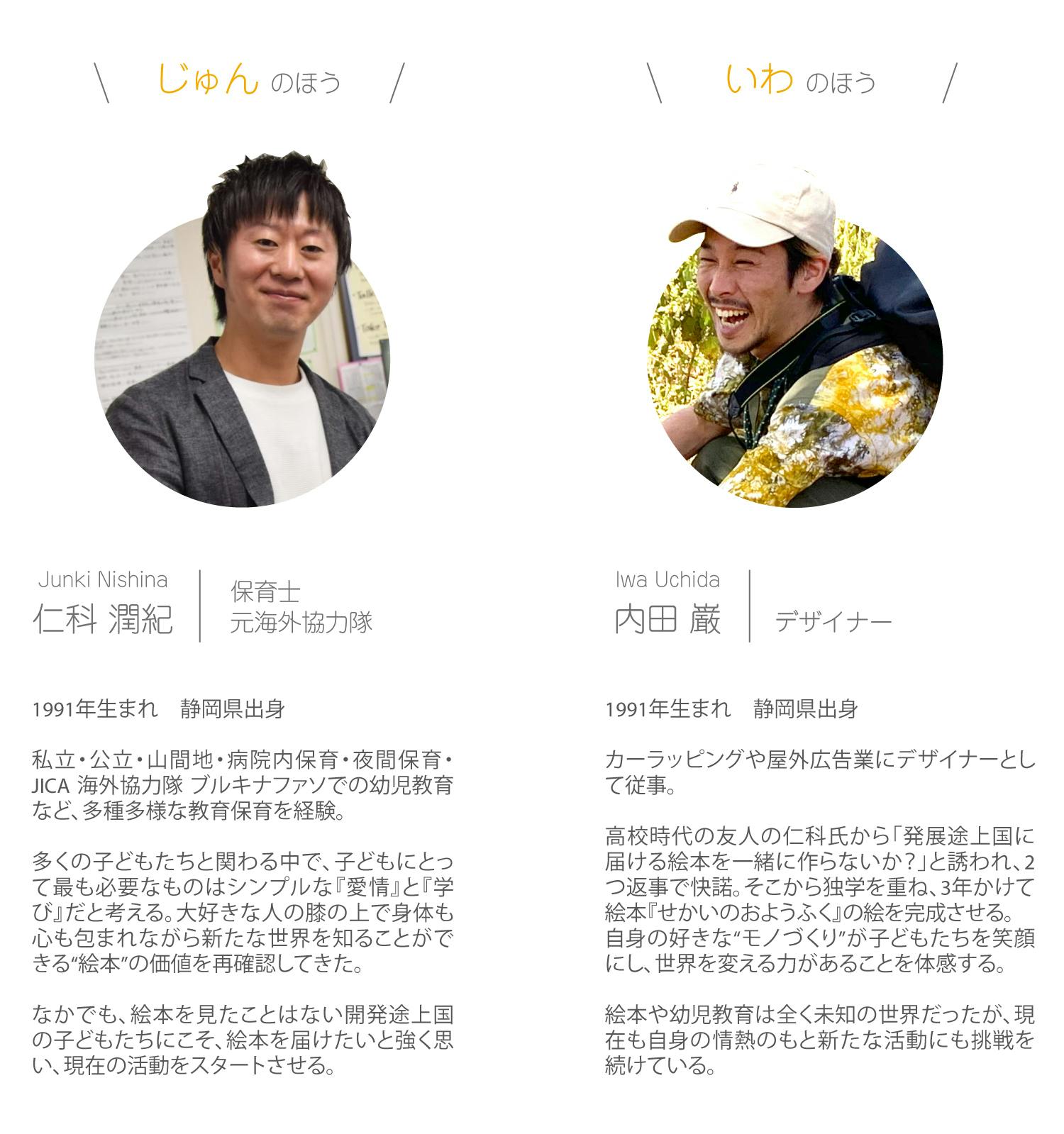 保育士×デザイナーの2人組で絵本制作の活動をしている、いわとじゅんといいます。