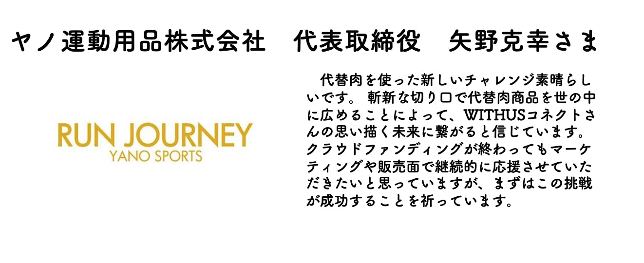 現在、代替肉メーカーさまやランナーショップさま、スバキリ商店さまの協力をいただきながら商品開発を進めています。多くのプロフェッショナルや友人、先輩の応援が私たちの支えとなり、アイデアを実現する大きな助けとなっています。本当にありがとうございます。