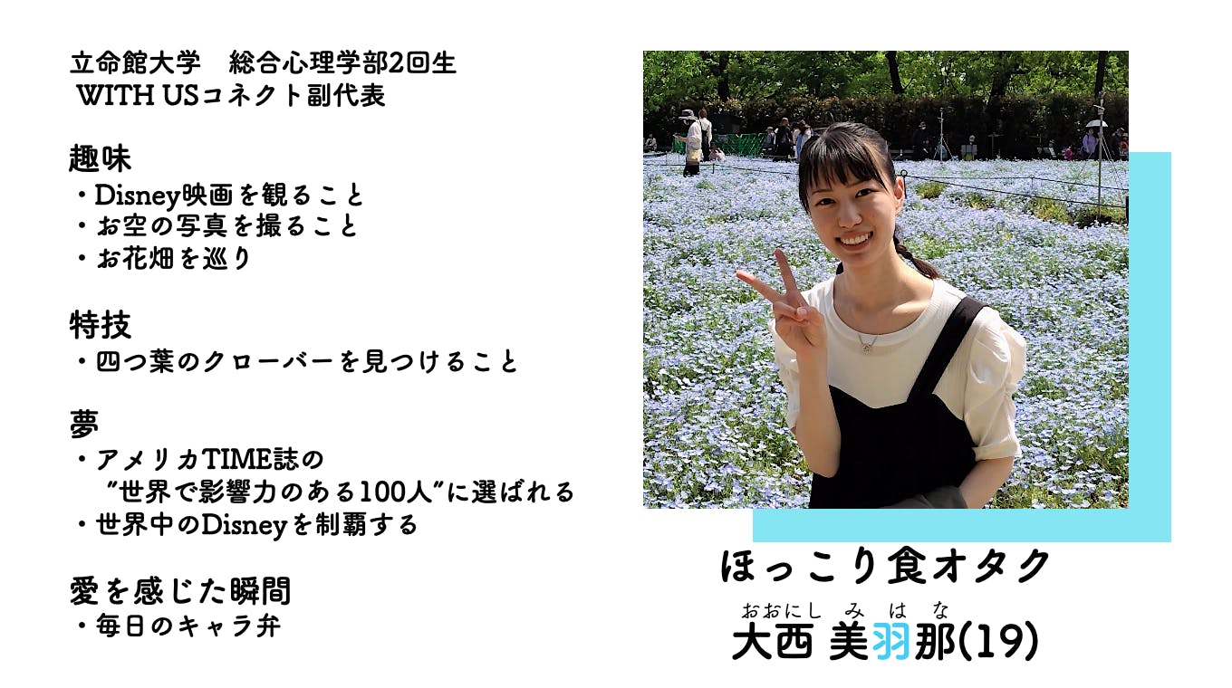 こんにちは!”WITH USコネクト”です。チームメンバー全員が現役立命館大学生で、食べることが大好きです!