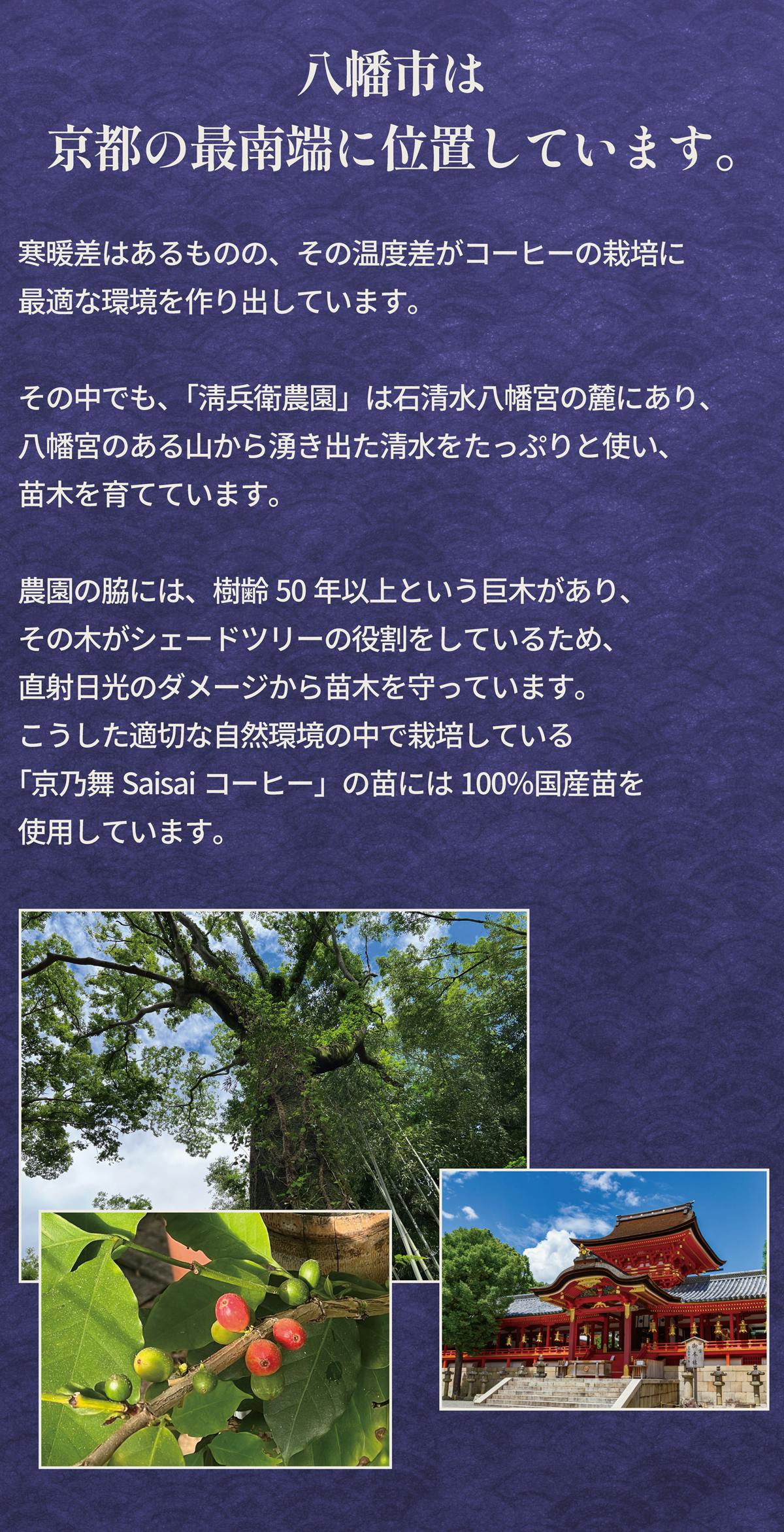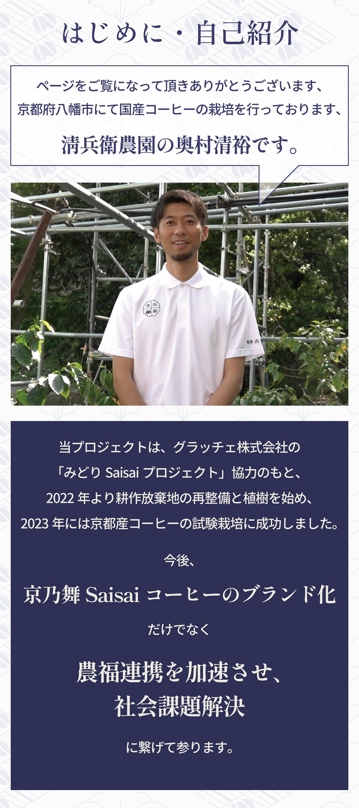 まずはじめに、現在、淸兵衛農園で栽培している「京乃舞Saisaiコーヒー」についてご説明させていただきます。