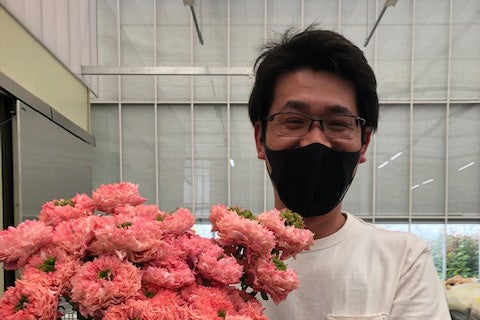 政嗣氏は家業のバラ生産を引き継いだ3代目。農業大学を卒業後、世界有数のバラ生産国オランダへ留学し24歳で就農と、バラの道をまっしぐらに進んできました。「消費者と生産者がもっと近い世の中にしたい。農業の仕事としての面白さ、やりがいを向上させ、若い担い手を増やしたいと思っています。クニエダの薔薇のファンの方々のお声を大切にし、もっと喜んでいただくために、誠心誠意取り組んでいきたいです。」と熱い想いを抱いて、生産者からお客様に直接バラを届ける新しい方法を様々に企画されています。