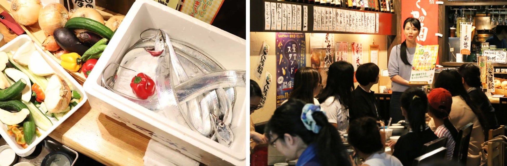 写真右:食品ロスプチ講座をする当社代表